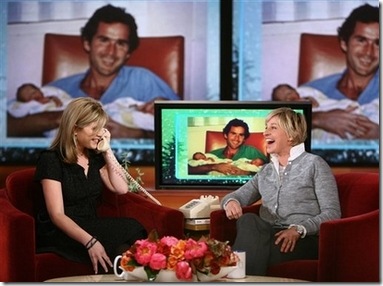Ellen: Look, we are showing a picture of you holding your daughters when they were just born. That's beautiful.