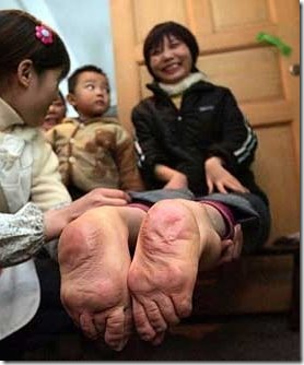 Wang Fang, working as a waitress, has a five year-old son with normal feet, said: "I can walk as well as anyone else and even run faster than them. I'm like everyone else - except of course that I put my shoes on backwards. There is no reason to class me as disabled."